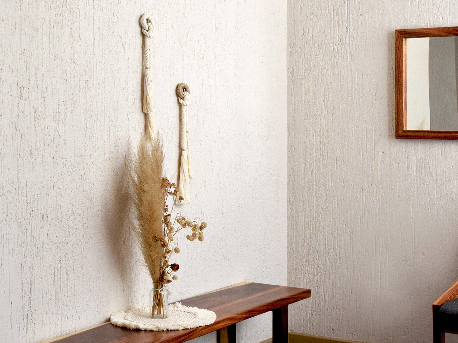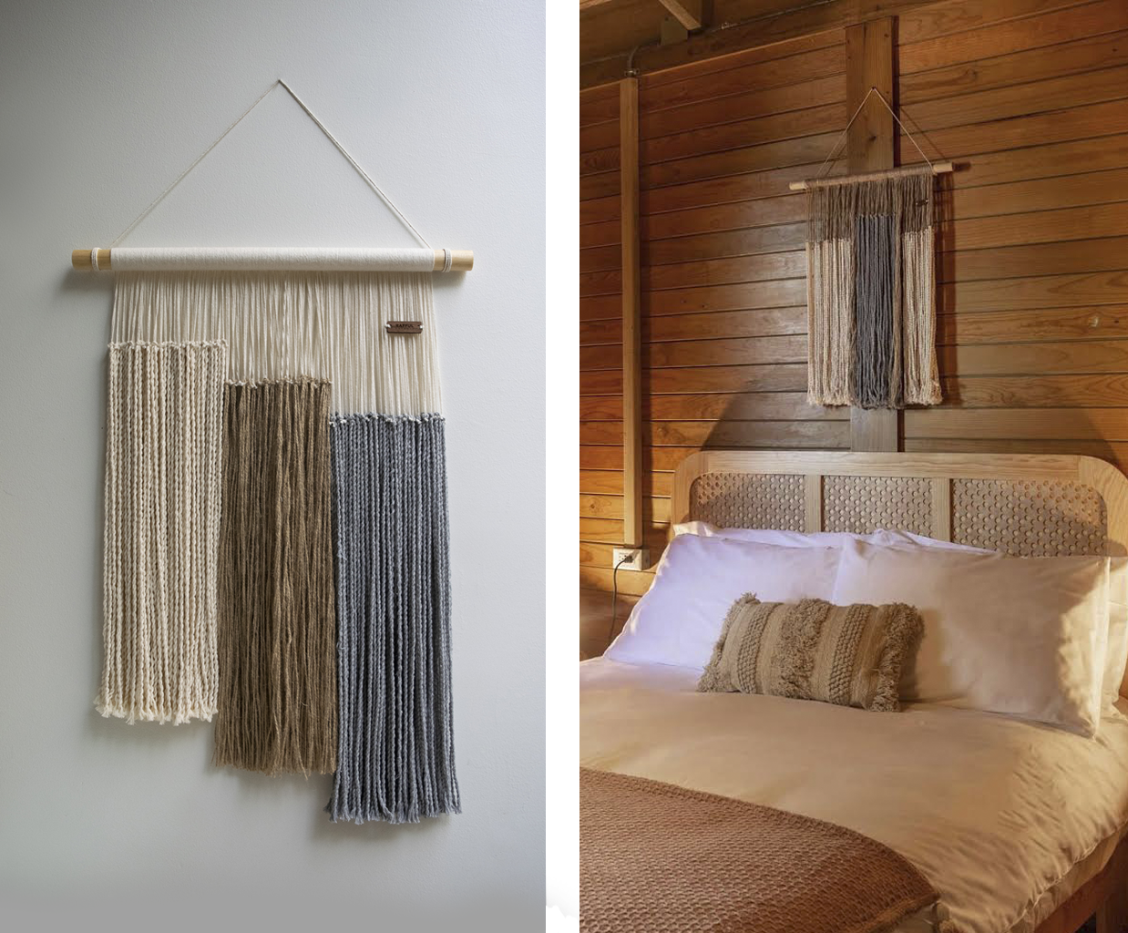 Piezas artesanales hechas con fibras naturales de algodón en crudo y yute. Ideal para complementar cualquier pared o rincón de tu espacio.