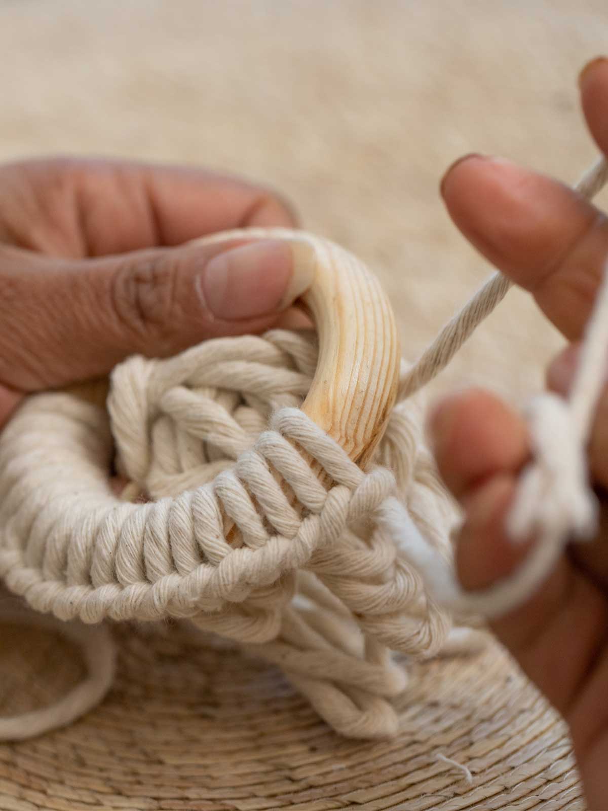 Utilizamos diferentes técnicas textiles tradicionales como: macramé, crochet, tramado textil, teñido con inmersión en agua y por supuesto; la experimentación de los materiales y técnicas, con la intención de innovar en nuevas formas y texturas, con la finalidad de transmitir la comodidad y el bienestar en el hogar.